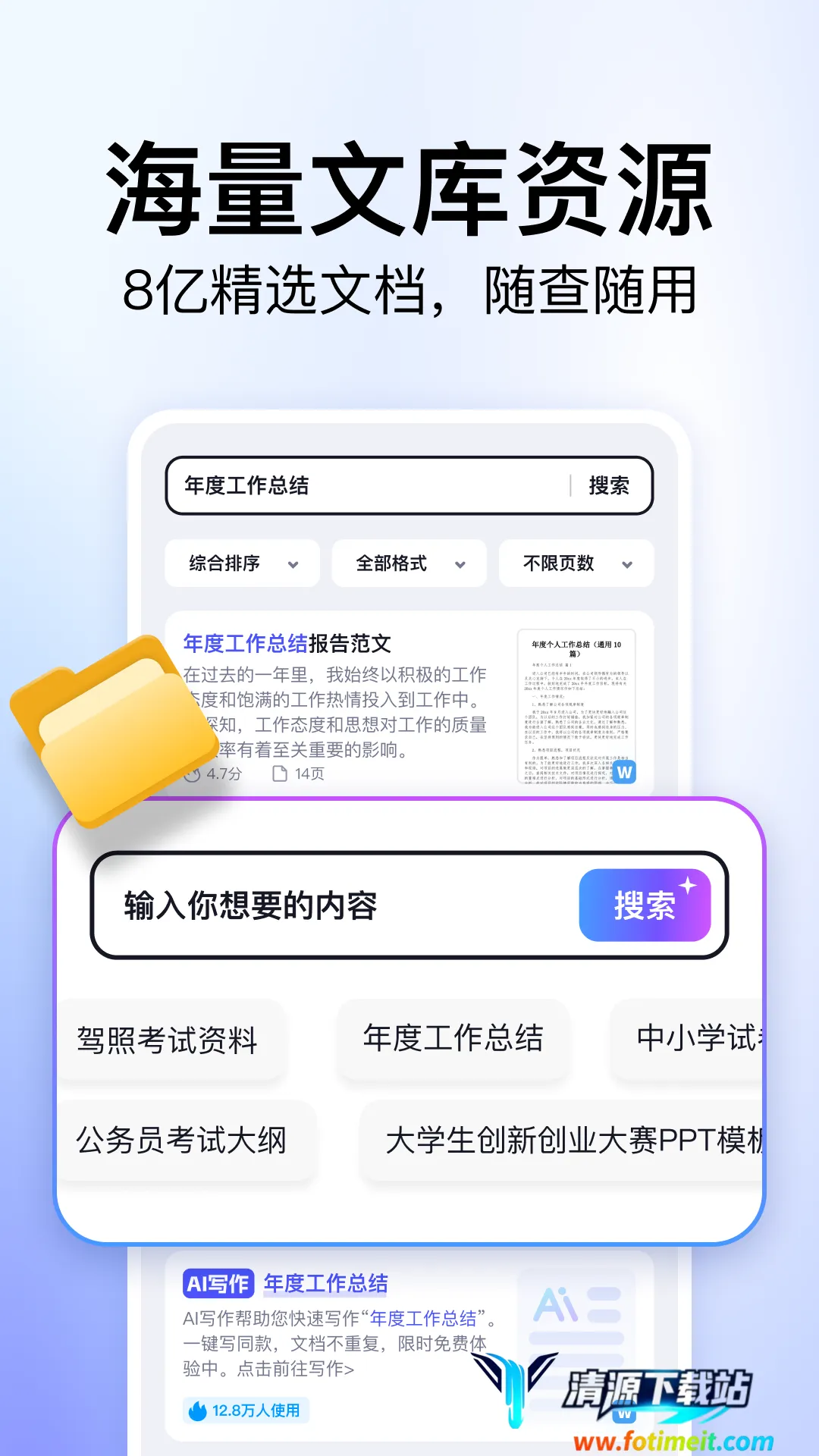 海量资源随心用:拥有超8亿精选文档,覆盖教育、学习、职场、办公等全场景,200细分品类应有尽有,合同模板、年度汇报、真题试卷等随查随用。