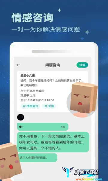 3、专业老师来解惑平台有多名情感老师入驻,能为你提供专业解决方案。无论是恋爱烦恼、婚姻家庭问题还是情绪压力,都能帮你有效解决。