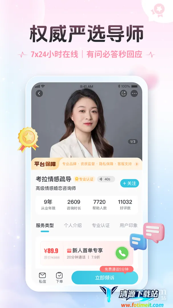 它能解决很多情感问题,比如恋爱烦恼,专业导师1对1在线咨询,帮你解决95%的恋爱情感难题;社交有困扰也不怕,海量精英倾听者教你搭讪技巧,拓展人脉;婚姻家庭问题也能找专业导师即时预约解决。如果你负能量爆棚、压力大,在这里能尽情宣泄,找到懂你的人。总之,它能给你提供专业解决方案,缓解压力,还能让你结识志同道合的朋友,真的很不错!