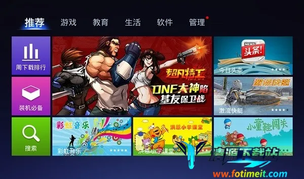 4. 功能很丰富:不仅有安全保障、推荐功能,还能及时提醒用户更新电视系统,应用分类详细,还有特色软件和游戏等。