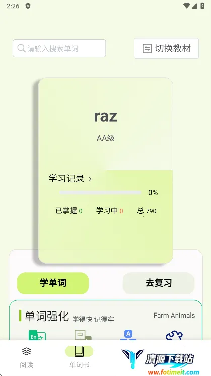 3、智能复习安排:系统会依据用户背词的熟练度自动安排复习时间,既避免死背熟词,又防止陌生词遗忘过快。