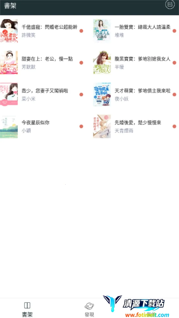 2. 界面简洁大方,操作简单易用,可随时安排小说书架,增加或删除小说,给用户良好操作体验。