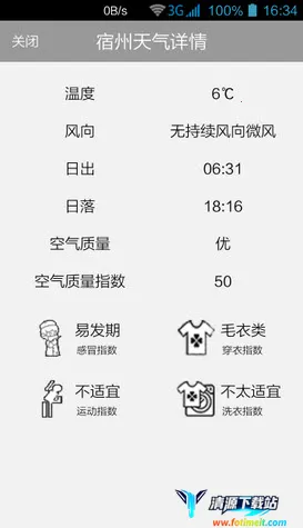 这款天气查询软件表现出色。它能提供准确的天气预报结果,助用户做好准备,其详细的天气信息极为实用。界面设置直接,操作方便,打开就能查看天气状况。从下拉列表可轻松查看各种天气信息,为全国用户提供了准确的天气预报服务。它还能学习八项生活指标,助力用户正确出行,自动切换城市天气,设置温馨提示功能,使用简单。不仅能实时更新天气,还能看到未来近15天的天气情况和气象信息,提前掌握出行状态。此外,有轻便的天气查询系统和定制化多地天气查看服务,应用设置大众化,节省手机内存,无关联启动项,不额外消耗流量,是一款非常实用的天气软件。