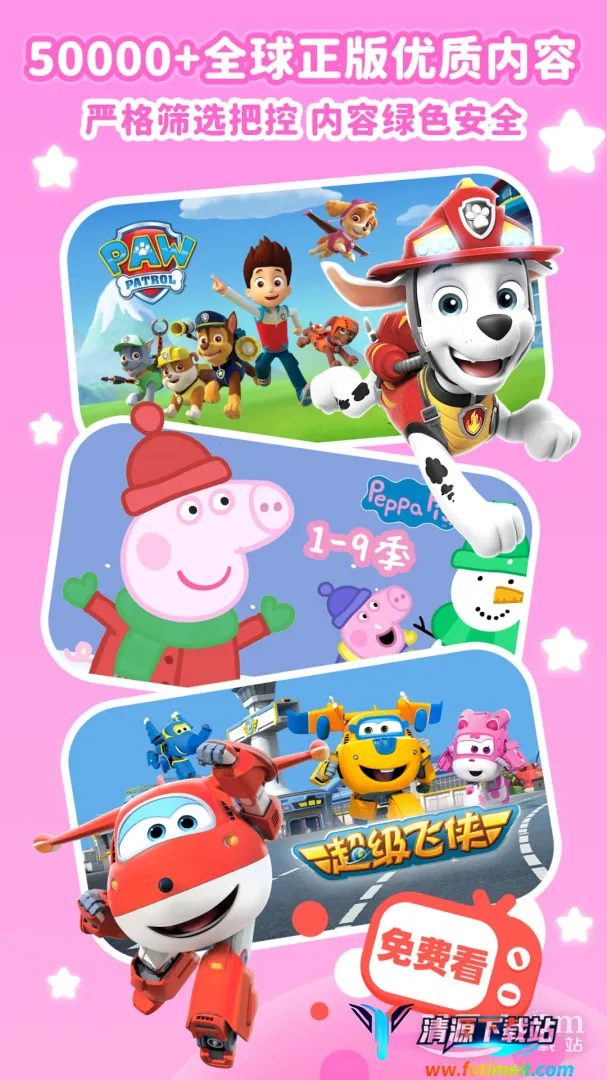 1. 海量资源:包含海量经典儿歌、优质动画、益智故事、英文启蒙等丰富内容,涵盖小猪佩奇、小马宝莉等数十种热门IP,满足孩子多样需求。