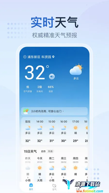 天气预报星是一款天气服务软件,数据源于全球权威机构及众多监测站,覆盖200多个国家地区。提供全周期天气服务,有实时天气、长周期预测、生活服务集成等功能,界面极简,可个性化定制,优势众多。