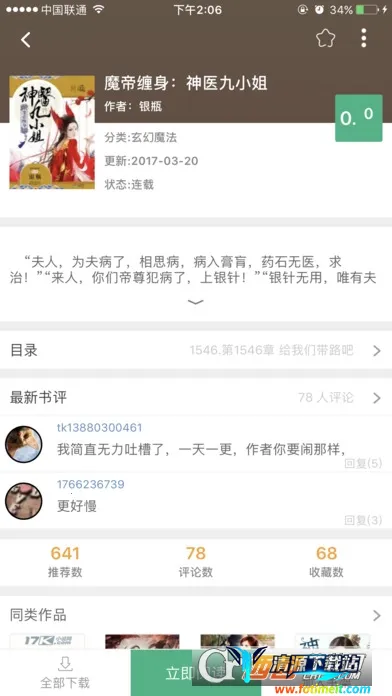 2、小说资源超丰富:涵盖现代言情、都市现实、玄幻仙侠、历史军事等各类小说,封面精美,且热门影视原创作品众多,各榜单前十,海量小说更新迅速,不断更。