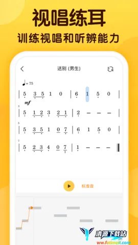 2、辅助高效:练习页面有五线谱简谱展示,底部还有发声琴键辅助,让练习歌唱及发声更高效便捷。
