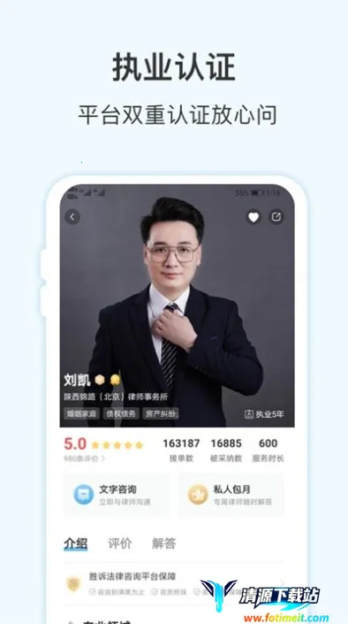 3、隐私权益保护:提供一对一私人专属咨询,文字语音安全加密,平台还有权威法律保障协议,保证咨询双方权益。