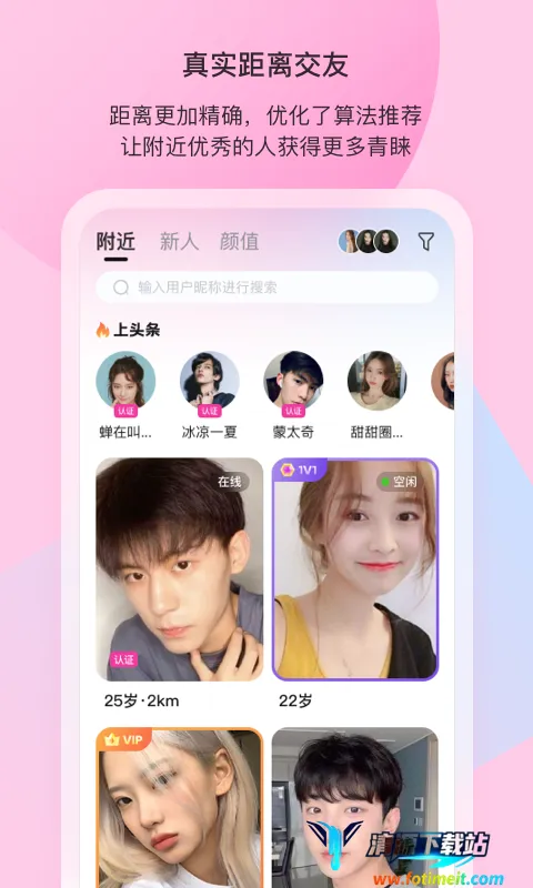 4. 打造颜值社区板块,通过机器评分人工打分形式,为你推荐附近优秀的高颜值用户,带来不一样的交友体验。