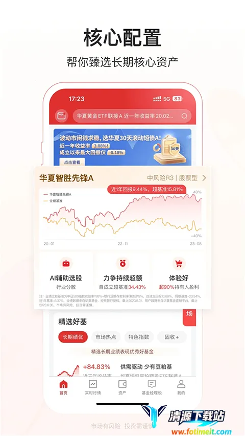 华夏基金管家是被国家认可的。华夏基金成立于1998年4月9日,经过国家相关部门检验核查后允许建立。它是一家综合性全能型企业,能提供广泛金融服务,满足各类投资者和企业需求。旗下的华夏基金app官方版超实用,整合了活期通现金管理、资产查询、基金净值查询和交易等多种功能。能随时随地进行认购、申购、赎回、定投、信用卡还款、交易查询、个人账户管理等操作。针对理财小白推出定投类产品,一键定投省却选基金择时和操作繁琐的烦恼。还有智能推荐、一键定投、个性化理财、享受活期通折扣等特色。可直接购买华夏基金公募和投顾组合产品,还能查询其他代销渠道买入的产品。在这里,你能轻松管理自己的基金投资,实现长期投资目标,是值得信赖的基金管家。