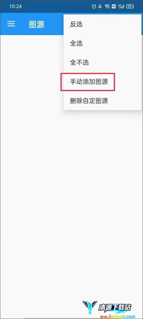 3、这里会显示所有的图源网址,点击右上角的三点图标并点击手动添加图源。