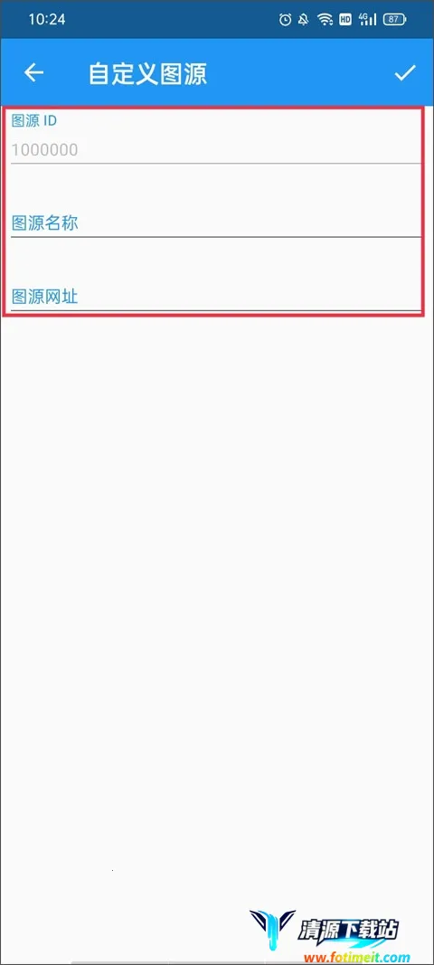 4、输入图源ID、图源名称、图源名称以及图源网址,最后点击右上角的对钩。