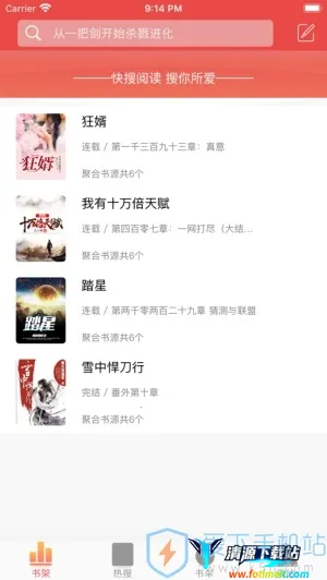 快搜阅读器app苹果版是免费换源小说阅读器,能在线听书,输入关键词可搜小说,支持缓存下载,分类详细,无广告弹窗。通过手势操作翻页,更新快,多类型小说齐全,还支持多语言,可联网下载。