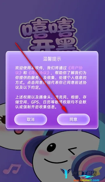 1、打开嘻嘻开黑app,点击同意隐私政策