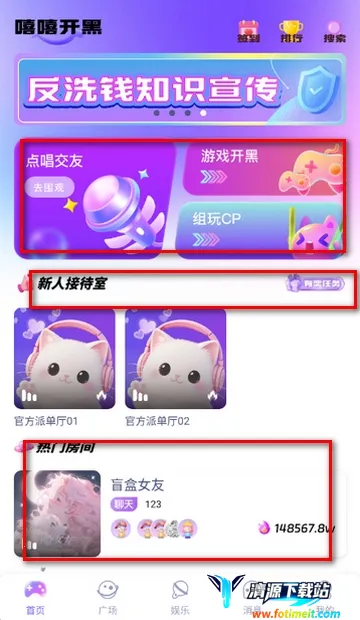 5、点击娱乐页面,可以跟大家一起聊天玩游戏等