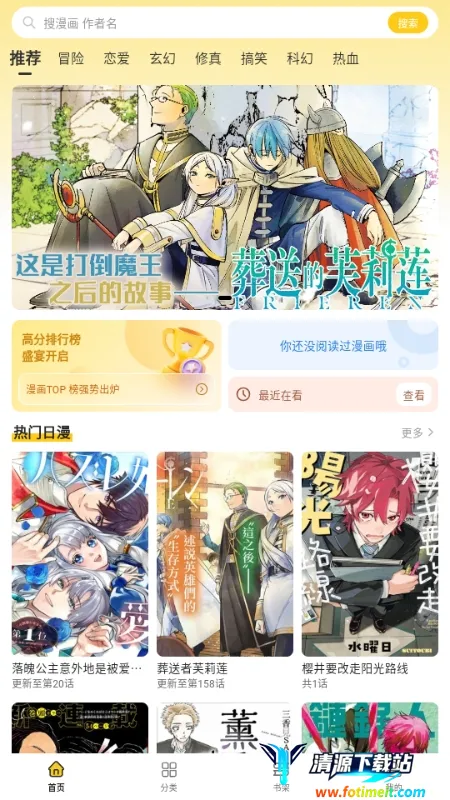 6. 可通过推荐热门榜分类专区挑选漫画,各专区不断更新。