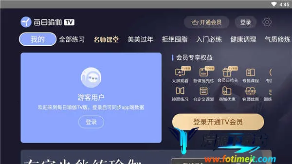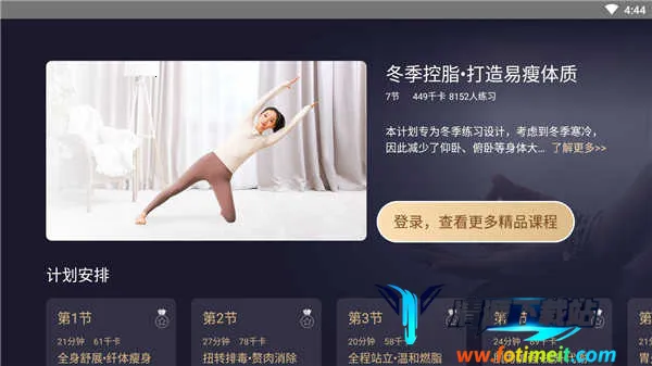 2. 高清画质适配大屏显示,带来清晰视觉体验,配合专业教练团队录制的课程,动作标准且安全,让用户在家就能享受专业的瑜伽指导。