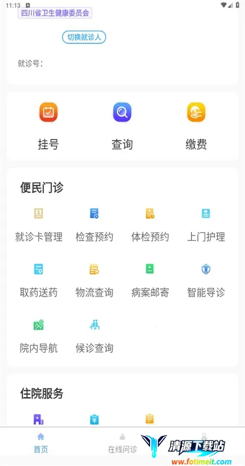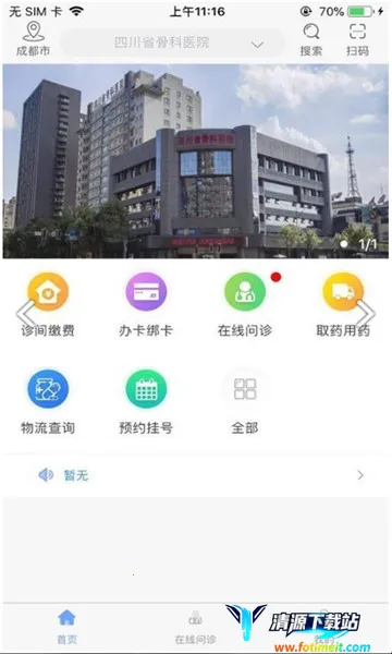 川骨通是四川省骨科医院官方推出的线上就医平台,依托医院开展在线问诊、开处方、预约挂号、缴费、病案邮寄等业务,还能查询报告、医生信息等,服务全面且划分详细,方便患者就医管理。