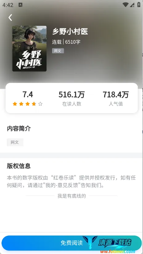 红卷乐读在阅读体验上表现出色。其能实时推送新书,专属频道精准推荐,满足不同性别阅读喜好。自定义功能打造专属阅读空间,夜间模式护目。多种翻页模式和阅读设置,排版智能顺畅。书籍更新提示及时,榜单分类实用,算法推荐解书荒。排行榜人气小说多维度呈现,专业书评助了解亮点,还支持多设备同步进度。且无充值界面,资源免费读,能精准推荐,弹幕评论添趣味。整体而言,红卷乐读为读者提供了丰富、便捷且有趣的阅读环境,无论是追新还是沉浸阅读,都能较好满足需求,是一款值得推荐的阅读APP。