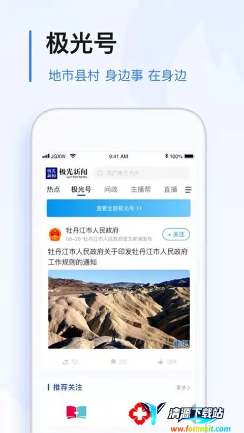 黑龙江极光新闻主持人涵盖了丰富实用的功能。它能让你及时获取新鲜资讯,作为黑龙江本地原创新闻输出平台,图文视频俱全,国内新闻热点持续发布,国际新闻24小时不间断更新。权威发布板块,有权威消息和政策解读,去伪存真,专业记者和专家为你剖析。百姓能通过爆料线索板块,快速反馈意见,畅通言路,还有大V帮忙指点迷津,直通政府。在天大小事板块,能足不出户进行缴费查询、证照办理流程简化等。而且极光号涵盖地市县村身边事,一键订阅全网信息,一键关注各路大神,国事家事天下事、趣闻观点全包括。总之,它致力于打造多个平台,满足你了解资讯、参与互动、办事等多方面需求,让你轻松掌握各类信息,方便又实用。