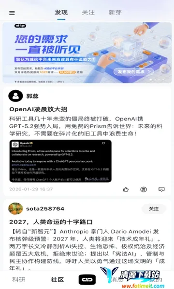 打开软件,完成登录注册,然后就可以看到首页提供了超多文章动态。