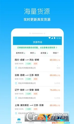 如果你正在寻找一款专业的物流货运服务平台,那钢信物流app绝对值得一试!它专注服务钢铁产业链,是全国性的物流货运平台。这里有百万货主,海量货源,找货配货分分钟就能解决。千万司机响应迅速,能快速为你匹配运输资源。它具备全程定位功能,能时刻掌握车辆位置,让运输更安心。线上实名保障了千万用户安全,在线交易安全又便捷,运费能秒到账。精准货车导航和智能线路规划,省心又省钱。而且支持快速查找,自动推荐匹配优质货源,高效配货。添加常跑路线,就能实时掌握货源信息。货源分类多样,多种运输模式结合,有效降低车辆空驶率。不管你是企业货主还是个人发货人,它都能为你提供便捷高效安全的物流解决方案,轻松解决物流运输中的各种问题。