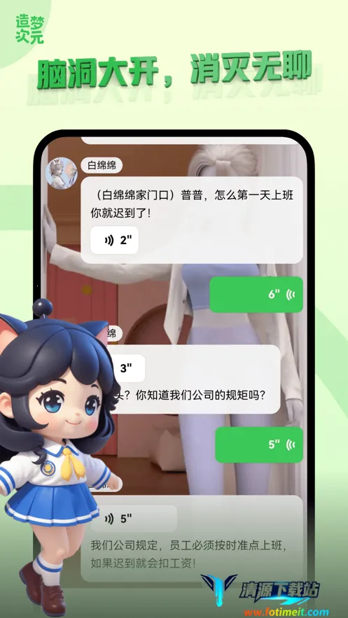 造梦次元为用户打造了一个充满想象力的互动世界。用户能自定义AI角色,调整外观、性格与聊天风格,享受多样聊天乐趣。这里有海量AI场景主题与虚拟聊天对象,可随时与心仪角色深度交流。软件功能丰富,涵盖互动故事、换装、生图等玩法。其亮点众多,比如能打造专属AI角色,玩法充满惊喜,AI伙伴随时陪伴解闷。优势也十分突出,AI角色形象与声音融合度高,还有知名主播带来全新故事。在这个平台上,用户可以尽情享受与次元角色互动的独特体验,无论是解闷还是寻找陪伴,都能得到满足,开启美好瞬间。