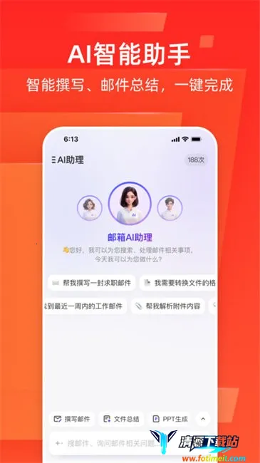 3. 智能邮件处理:自动合并同一主题邮件,支持快速回复与转发,类似聊天界面,提升阅读效率;还新增AI助理功能,通过自然语言交互生成邮件内容,支持多语言邮件一键翻译,自动提炼关键信息。