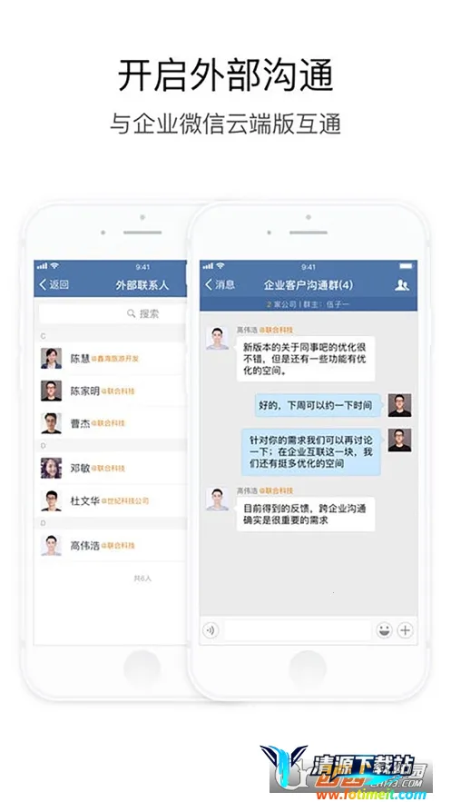 3. 沟通高效功能强:与微信一致的沟通体验,消息可查看已读未读状态,支持单聊、群聊、视频会议等,最高500人同时在线屏幕共享,沟通更高效。