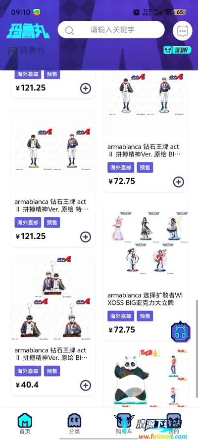 2. 品类齐全:玛鲁丸涵盖手办雕像、模型玩具、盲盒、日用周边、谷子等五大核心品类,并延伸至服饰、3C数码、美妆等衍生领域,商品品类丰富多样,满足二次元爱好者各种需求。