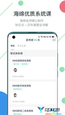 海绵MBA是一款超棒的在线备考软件。它能提供一站式专业备考服务,不管你有啥需求,都能制定专属学习计划和资源,高效复习备考。这里有优质精品课,名师带你学;“我的课程”清晰记录预约、购买及观看过的课。海量精选好题免费刷,还有测试功能检测学习效果。它的亮点多多,内置海量学习资源可在线学,提供测试,一站式服务超省心。优势明显,科目题型分类方便选择学习,多种免费学习工具随意用,能参加名师在线课程。特色突出,按需求选课程有学习指导,专业一对一督学,真实模考检测水准。还支持多设备,信息记录全同步,手机能连打印机打印习题,课后题、真题、错题集都能打,做完扫描二维码看答案解析,超方便,赶紧来下载吧!