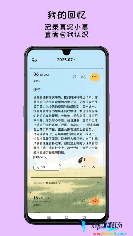 EMMO手帐能细致记录生活点滴,按时间保存。平台分享多种记录模式,如图片、语音、文字。它还能自动识别情绪,按月或周归纳情绪状态。注重保护隐私,可单独设查看密码。以图文并茂方式记录,增强视觉表达力,为用户量身打造个性化记录方式,添加想要内容。无论生活小事还是人生感悟,都能用它记录,留存珍贵印记。