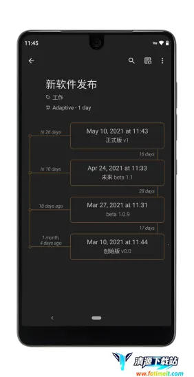 它能通过时间线的方式记录生活日常。可以对事件进行分类管理,要用时能快速找到;每个事件下方能备注,时刻提醒自己。软件所有功能免费且无广告干扰。还有不同颜色主题方案,夜晚可用深色模式;能在桌面添加小部件,不打开软件就能记录;事件里可设提醒,到时间响铃提醒。搜索事件能按名称或日期范围快速查找,还能设置提前提醒。而且它无需联网,随时随地能记录。用它独特的时间线记录方法,能高效直观地管理日常生活和时间,提升生活品质与工作效率,很适合有拖延症的朋友下载使用。