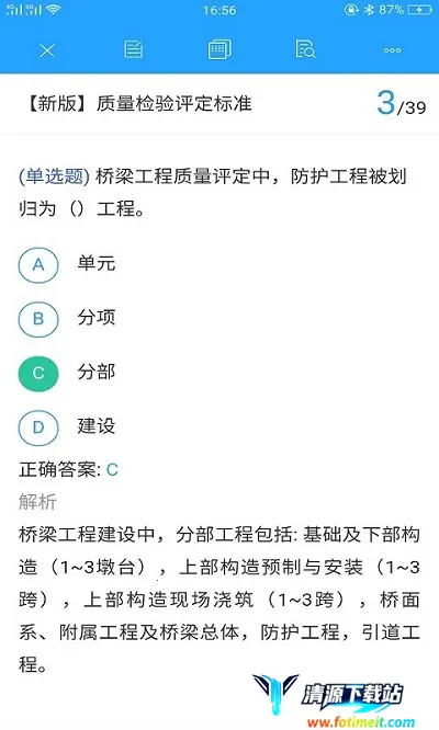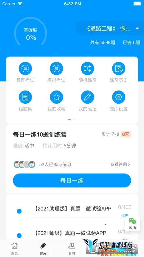 它的题型丰富,有单选题、多选题、判断题、综合题等,能帮你更好地学习考试。还收录了历年真题,可反复练习,支持对错题记录,方便重做加深记忆。软件有总览、章节练习、模拟考试、错题重做、单题解析等功能。全新升级的大量试题任你刷,就像试验检测考试的驾考宝典。现在它还增加了班级功能,优化了使用流畅度。有了微试验题库,备考变得轻松又高效,是你做题备考的得力助手。