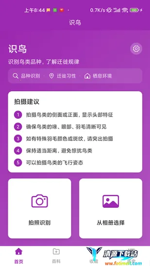 它亮点多多。可在首页直接搜索小鸟名称、习性或栖息地。能通过录制的鸟叫声进行识别,即便在野外信号差时也能使用。无需联网,方便至极。每次搜索识别的时间和地点会保存,便于查阅记录。数据库定期更新,保证鸟类信息准确全面,无论专业人士还是业余爱好者,都能满足使用需求,助您轻松了解各类鸟儿,为保护鸟类贡献力量。