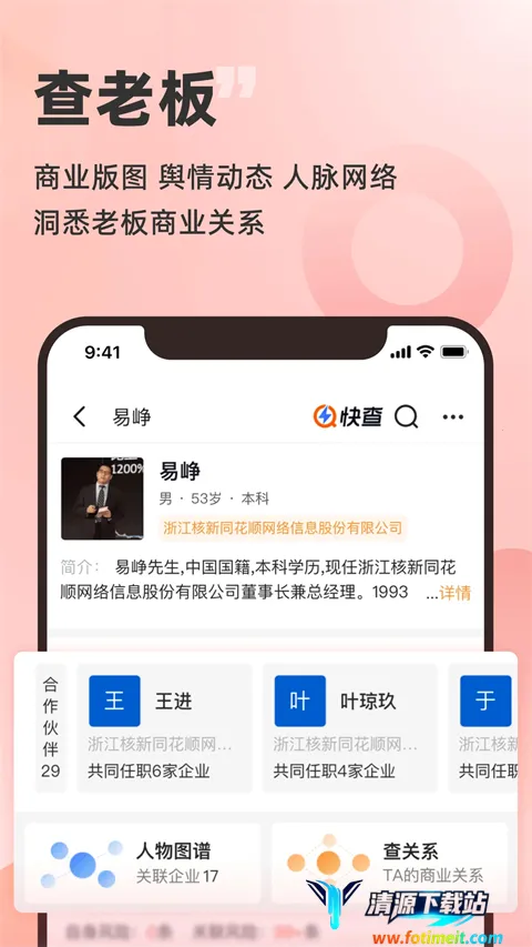 想知道查询企业信息等大数据工具安不安全?同花顺快查App就能满足你。它是一款免费的大数据查询工具,能查企业、查人、查数据、查风险、查关系、查老赖股权结构等。输入搜索类型,就能轻松获取企业最新详细股东地址、联系电话等信息,已覆盖1亿8千万企业征信信息。这里有智能企业准确搜索,千万级企业总量覆盖,多维度信息一网打尽;企业风险内幕模块426项数据免费查,合作银行放贷、选股诊股前可查风险;数据超市全量数据,支持各类场景应用;还有快查助手客服模块,能反馈问题及时解决。它还融入全新AI秘书,提问后能通过物联网搜索匹配结果并附带来源。用它查企业信息方便又安全,能帮你解决不少实际问题呢。
