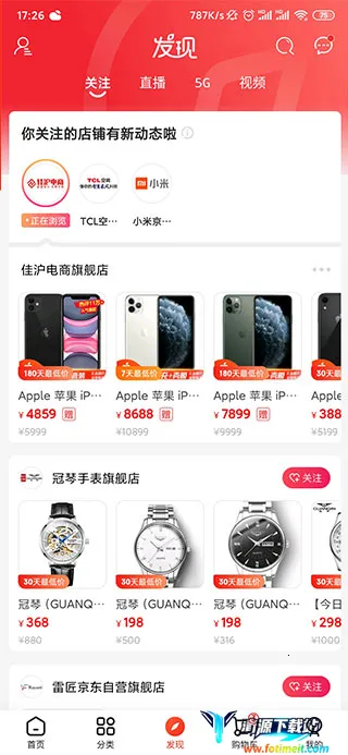 3、而且大家还能关注店铺或者是物品,直接在发现中查看自己的关注;