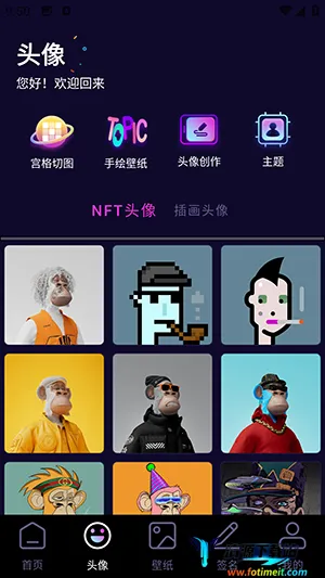 3. 汇聚丰富多样的内容,包括头像、壁纸、个性签名、插画头像等,全面覆盖多元潮玩美化需求。