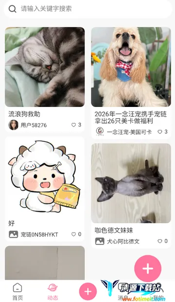 3、点击动态,可查看大家发布于宠物相关的动态等
