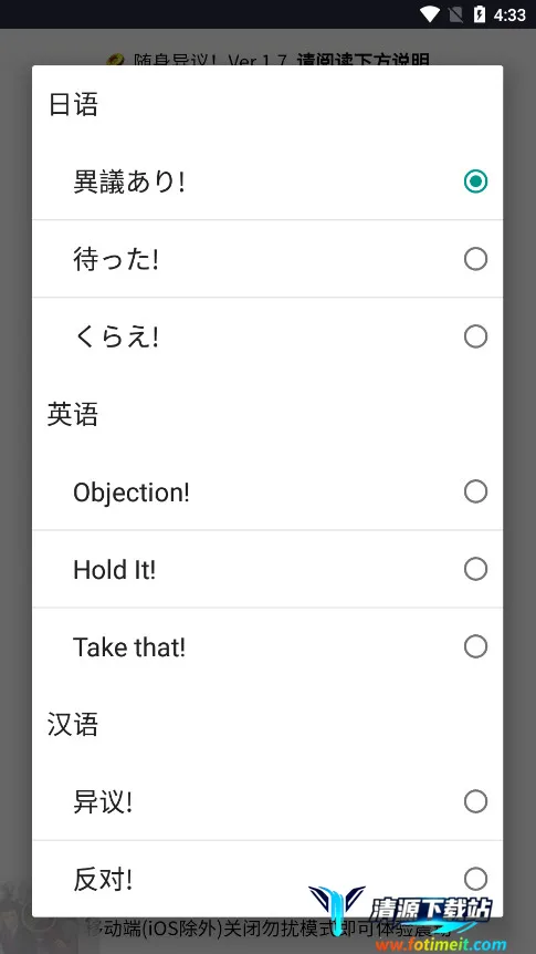 随身异议2026官方正版是一款以法庭为背景的趣味娱乐软件,支持多语言切换,融合语音识别和摄像头技术。可通过拍桌等触发异议音效,自定义角色声音和灵敏度,适合社恐及游戏爱好者,安卓设备轻松安装。