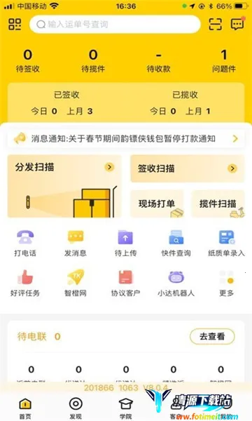 快递员揽派 2025 最新版本是专为韵达员工打造的揽件平台。能查看管理快递,实时记录统计,自动保存支票记录,支持多设备同步。还具备群发短信、云呼叫等功能,方便员工高效完成揽派工作。