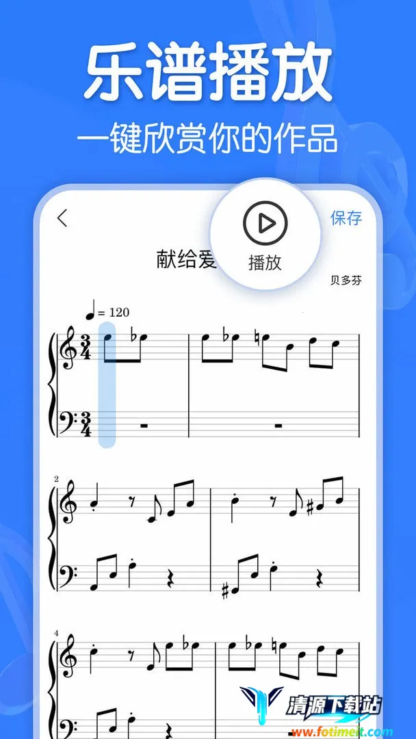 2. 播放完善:能播放作品,让用户快速欣赏并纠正错误,使乐谱更加完善。