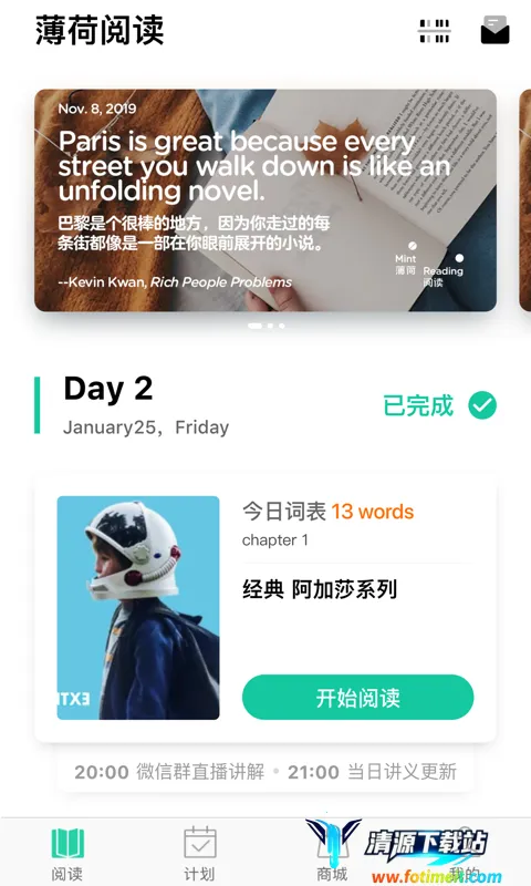 薄荷阅读2025最新版本是百词斩旗下英语分级阅读软件。免费在线阅读,资源不断更新。支持创建学习计划,有专业教师讲解。难度适配能力,提供多种辅助功能,帮用户轻松学英语,实现阅读提升 。