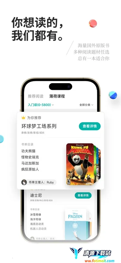 分级阅读,依据用户实际英文水平匹配书单,真正实现i1学习理念。