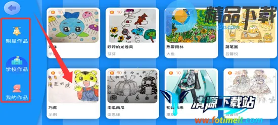 1、进入软件点击左侧的学校作品查看其他同学的创作