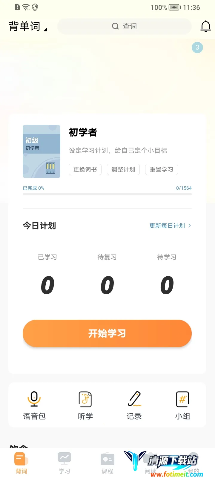 如果你想打开莱特英语背单词模式,首次打开软件时,选择你要学习的类别,比如背单词、学口语、零基础学习等。以背单词功能为例,选择你需要背诵的单词书,点击安装。安装时能在网络音频或本地音频间自由选择,网络音频需联网,本地音频占本地内存。等待安装完成,就能开始背单词啦。