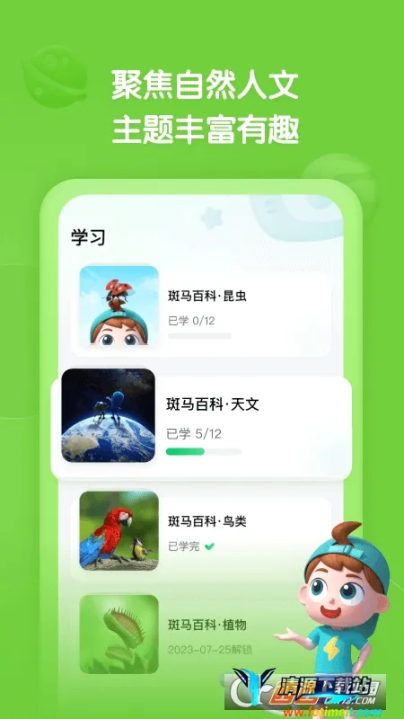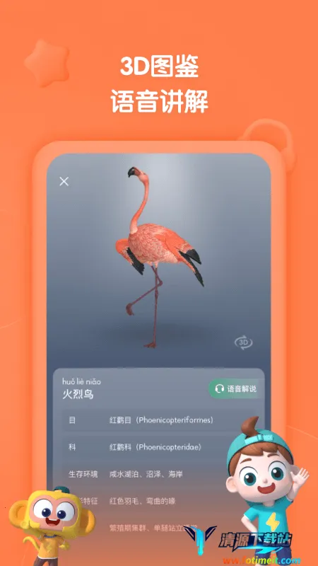 每月更新,围绕自然科技人文三大主题增设新百科内容,如已上线昆虫、天文等主题,还计划推出考古、天气等新主题。学练结合,每一集都有AI交互练习,让孩子边看动画边掌握知识。每个主题有不少于25个3D语音知识图鉴,可随时放大缩小旋转观看并搭配语音讲解,巩固学习效果。丰富的内容更新、有趣的学练方式以及独特的3D语音图鉴,助力孩子更好地学习科普知识。