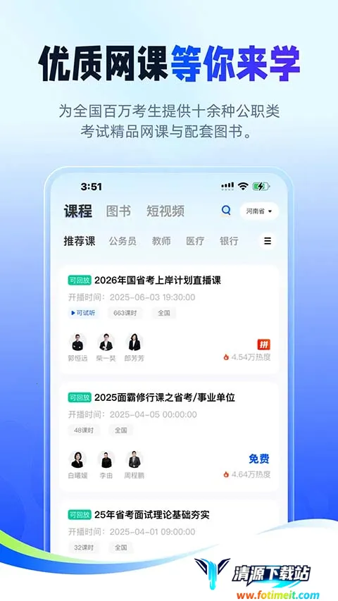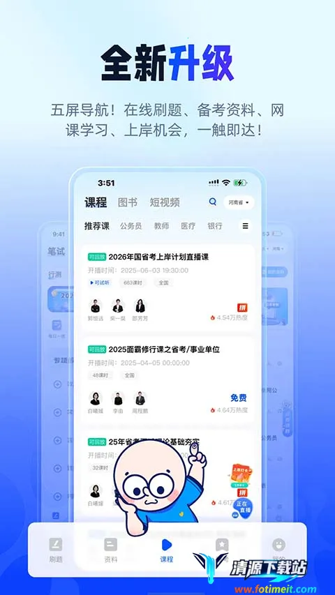 3. 丰富学习方式:支持免费上网课、在线看视频课程、参与直播互动,名师实时答疑,还有丰富备考资料。