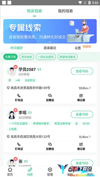 2、在线索页面,可以查看最新学员的报名线索;