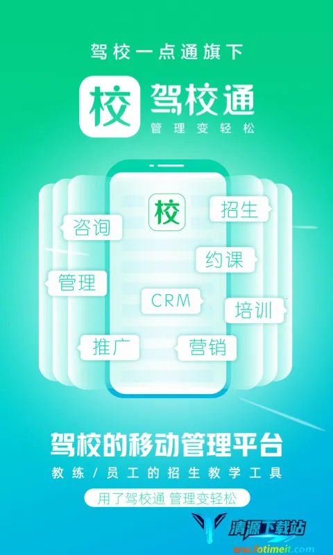 驾校通招生管理帮手是专为驾校打造的驾考学习软件,集招生、教学、管理等功能于一体。可解决招生难题,提升效率与质量,有实操视频,还能一键获取招生素材,查看缴费明细等,助力驾校更好运营。